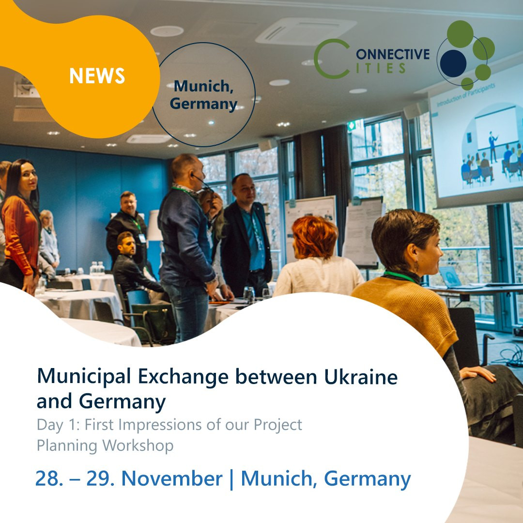 28-29 листопада представники Департаменту фінансів, економіки та інвестицій СМР взяли участь у семінарі «Стійкість під час війни - муніципальний обмін між Україною та Німеччиною», який відбувся в Мюнхені в рамках проєкту Connective Cities.