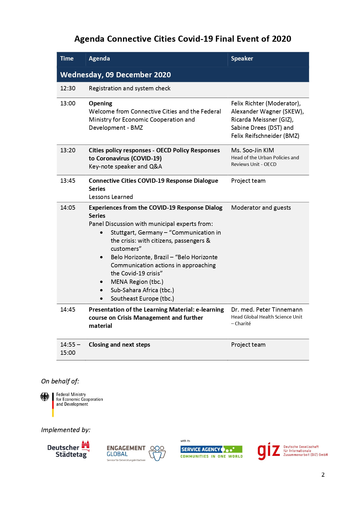 На заході також буде присутній представник Відділу міст, міської політики та сталого розвитку ОЕСР, який представить свій досвід передового досвіду у відповідь на Covid-19 у муніципалітетах країн ОЕСР, а також представник Глобального наукового підрозділу з охорони здоров’я в Charité-Berlin представить онлайн курс із відкритим кодом та книгу з антикризового управління, переклад якої підтримано в рамках серії Covid-19.
