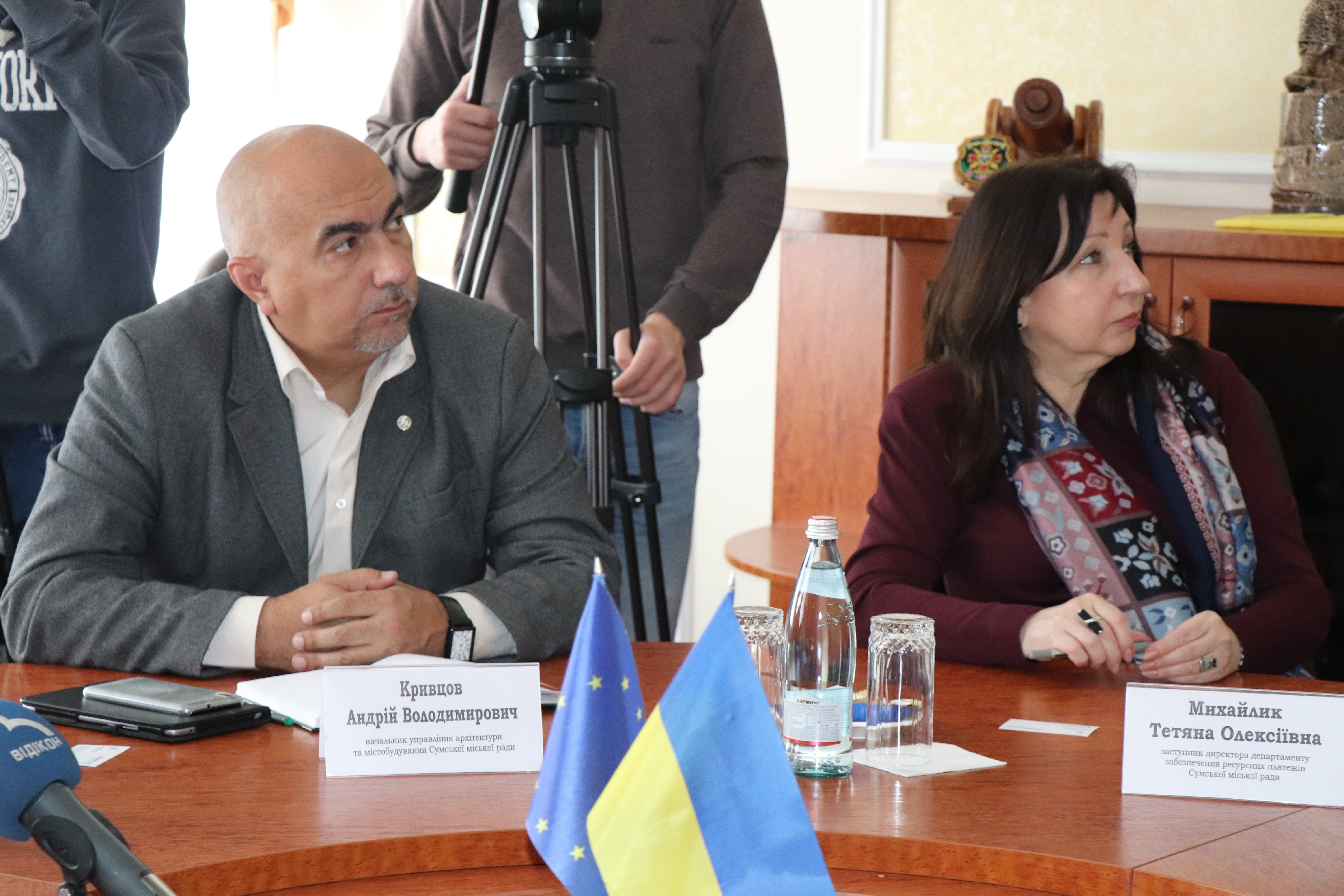 У свою чергу заступник директора департаменту фінансів, економіки та інвестицій – Лариса Скиртач, ознайомила присутніх із досвідом Сумської міської ради у реалізації проектів у співпраці з міжнародними фінансовими організаціями, про зовнішні зв’язки та спільні проекти м. Суми з містами-партнерами.